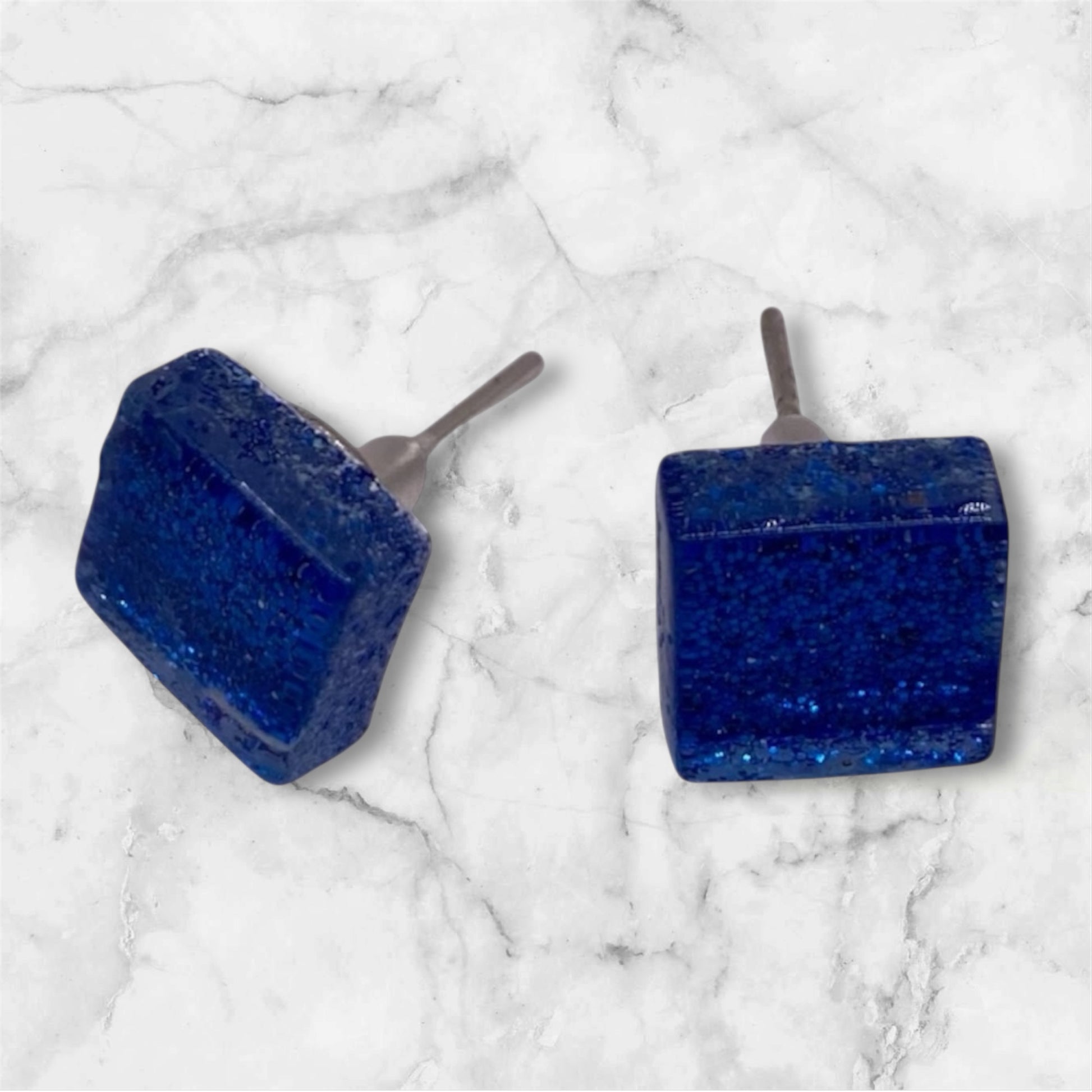 Blåskimrande stud örhängen i mosaiksten