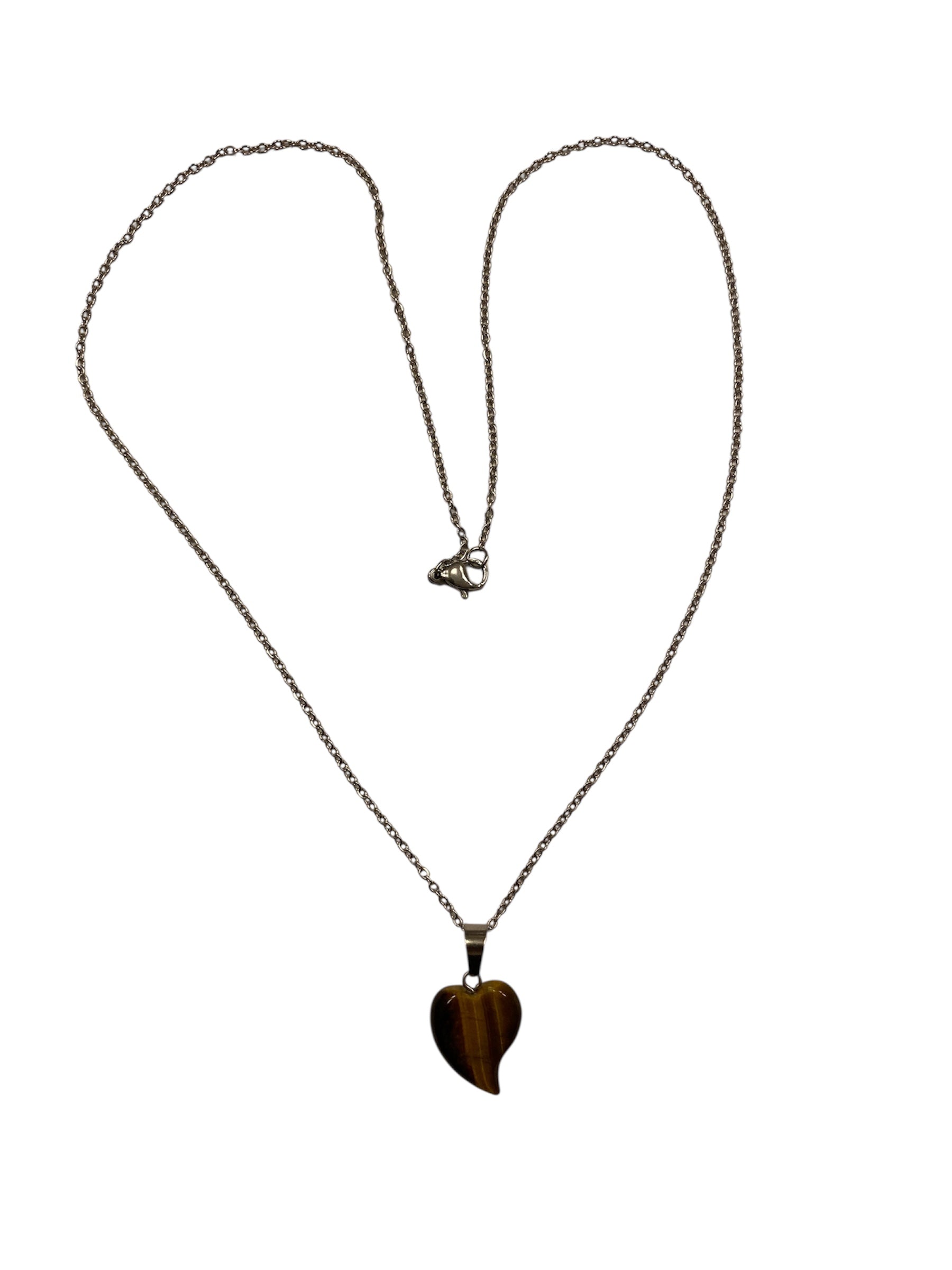Halsband med hjärthänge i ädelstenen Tigeröga