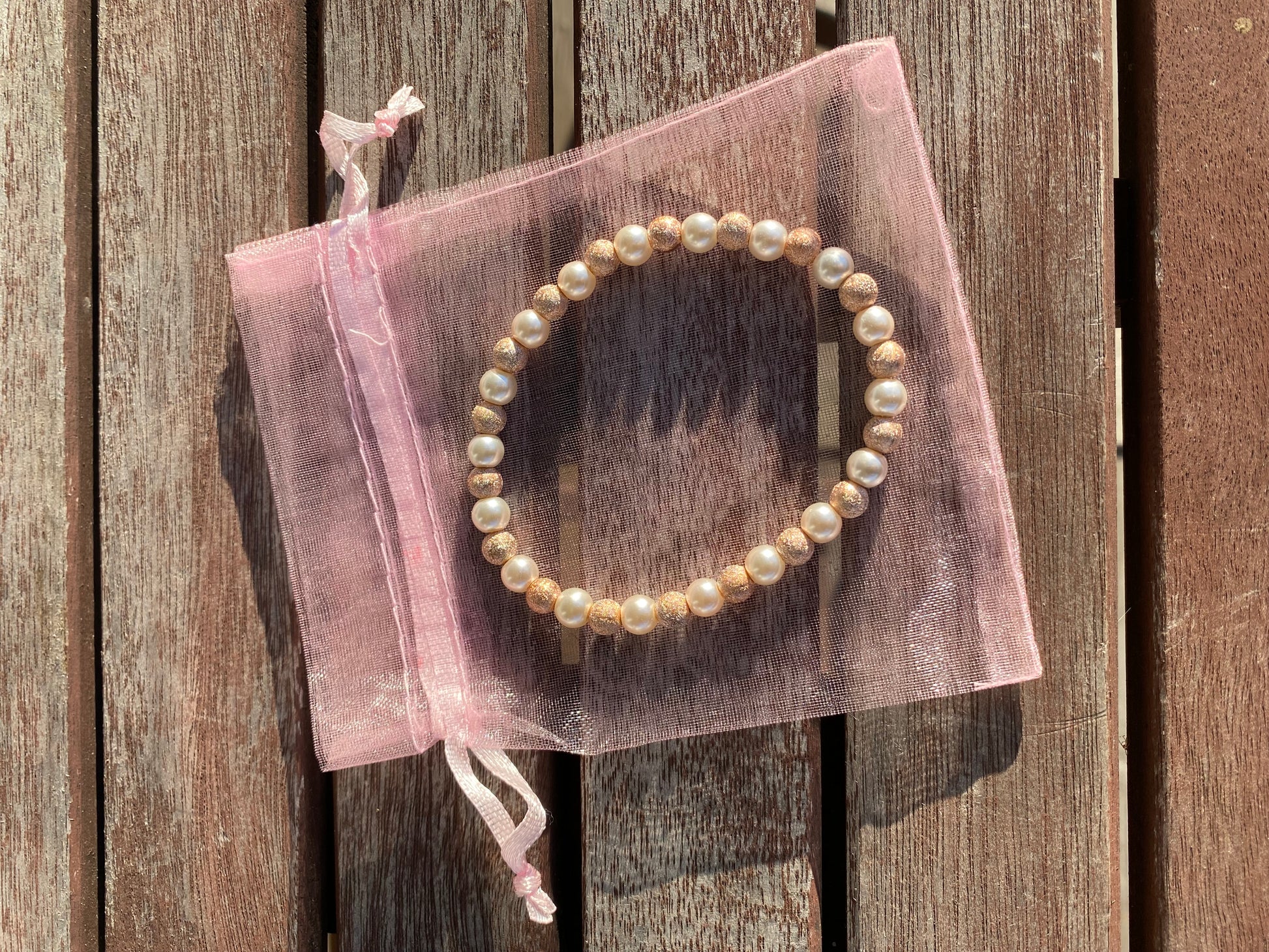 Pärlarmband med vita och roséfärgade stardustpärlor